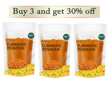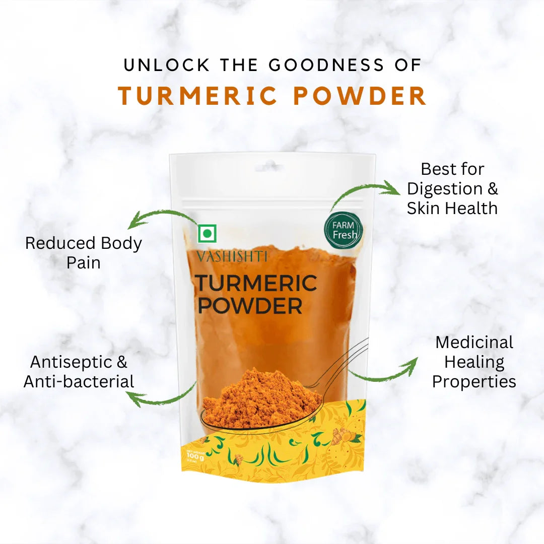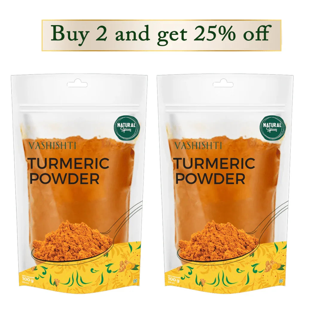 Vashishti Turmeric Powder is free of preservatives, artificial colours and smell, making it 100% natural.