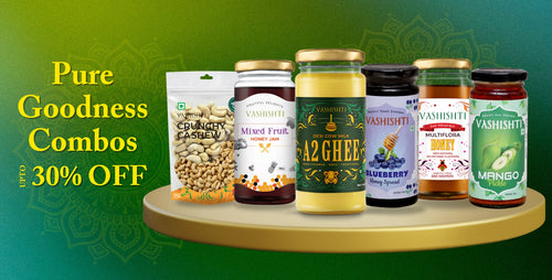 A rich combo of health and taste in every bite. A2 Desi Cow Ghee: Rich, nutritious, and made traditionally to preserve purity. Enhances digestion, immunity, and energy. Crunchy Cashews: Organic, nutrient-dense, and packed with healthy...